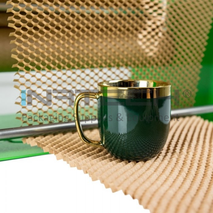 Dispenserul pentru hartie kraft este ideal pentru industrii, precum cea a cosmeticelor, a sticlei si a ceramicii, decoratiunilor (lampi, figurine, sfesnice), jucariilor, florilor si nu numai. Dispenserul este adaptat la hartie Honeypack cu latimile: 40 cm si 50 cm. Acest sistem este potrivit pentru uz personal, dar si pentru micile businessuri care ambaleaza ocazional produse si care au un spatiu de lucru limitat.