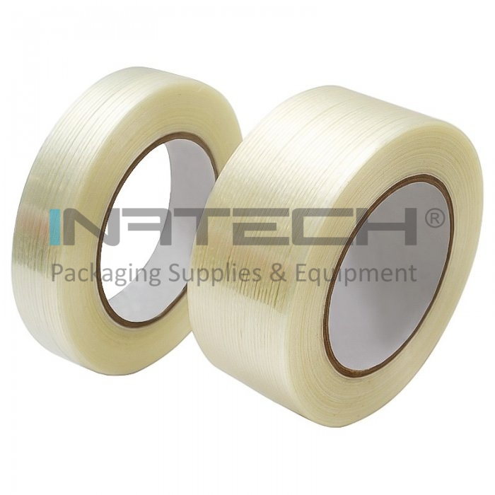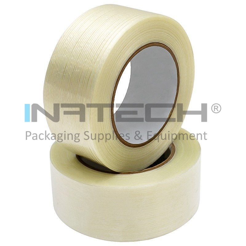 Banda Adeziva Cu Fibre Monodirectionale este compusa din folie de polipropilena laminata cu fibre de sticla si este destinata impachetarii produselor grele. Aplicatiile benzii adezive cu fibra de sticla includ impachetarea si legarea produselor cu o greutate mai mare, asigurarea paletilor si inchiderea si consolidarea cutiilor de transport. Banda adeziva are o rezistenta buna la tensionare si o capacitate redusa de alungire.
