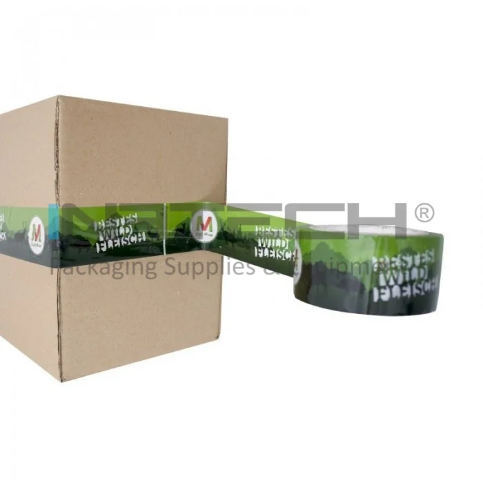 Utilizand banda adeziva personalizata, ambalajele sunt inchise corespunzator, sigilate si personalizate, banda adeziva imprimata fiind de asemenea un mijloc modern si eficient de reclama. Utilizata pentru ambalare pe suport din BOPP (polipropilena biaxial orientata) cu adeziv acrilic. Aceasta banda adeziva personalizata nu necesita masuri suplimentare de siguranta ca in cazul benzilor adezive cu adeziv solvent si este rezistenta la imbatranire. Poate fi stocata si utilizata perioade lungi de timp fara a-si pierde proprietatile.