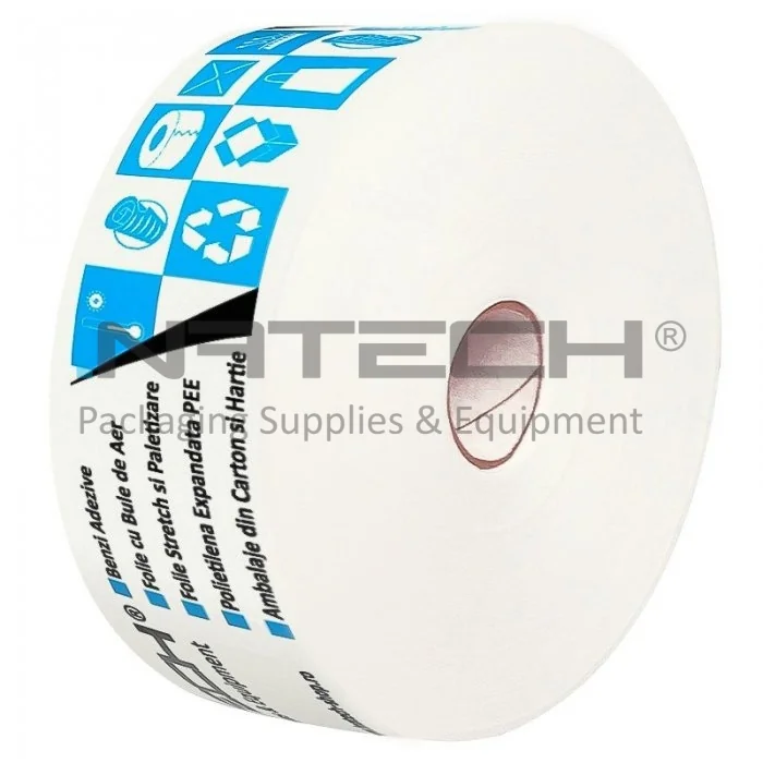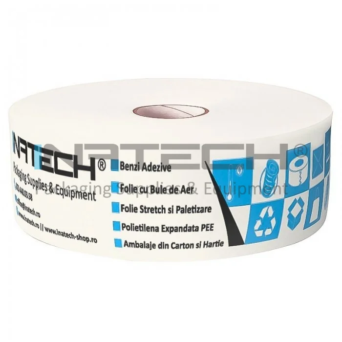 Banda Adeziva Umectibila Personalizata 60 mm x 200 m Lungime 200 m, Numar Culori 1 Culoare, Latime 60 mm, Adeziv Amidon, Tip Imprimare Pe Suprafata, Цвят Бял, Buc / Pachet 250
