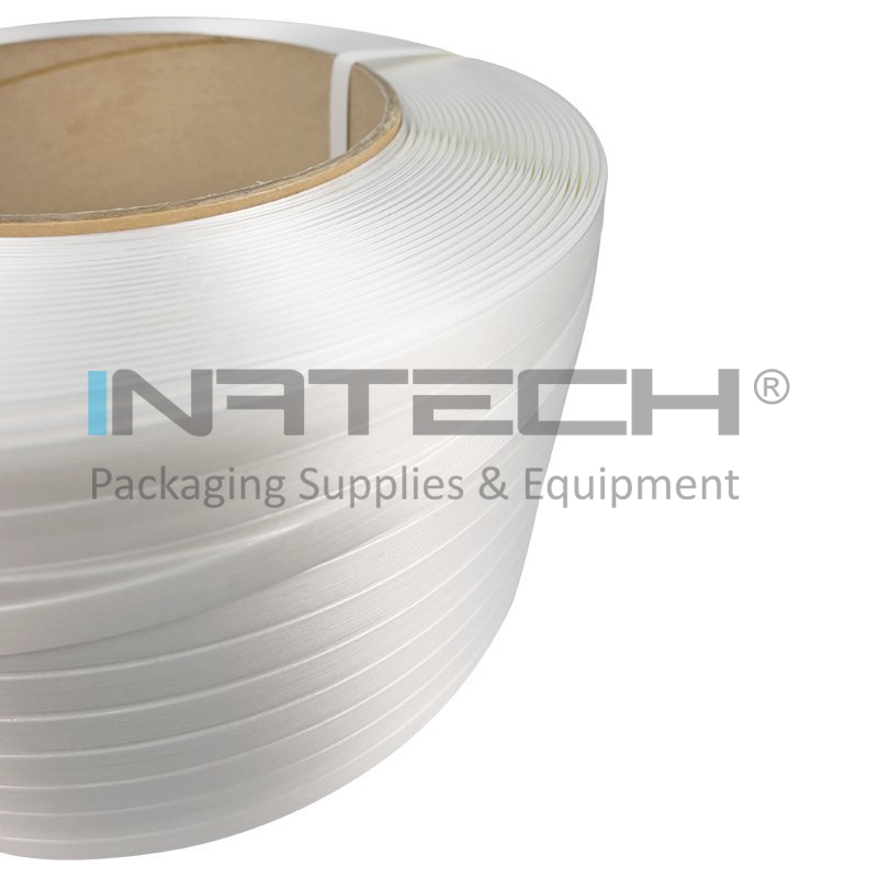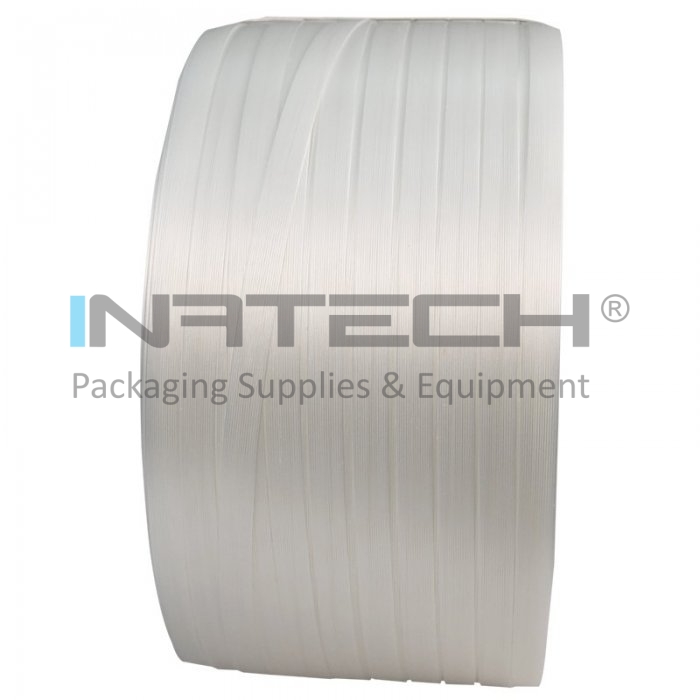 Banda PES Netesuta Compozit, Alb, 16 mm x 850 m, 450 kg, Tub 200 mm