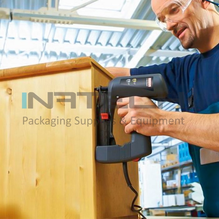 Capsator Pentru Lambriu potrivit pentru lucrarile de prindere a panourilor si a cangelor din lemn cu profil standard. Capsatorul include: functia multistroke, mecanism de incarcare din spate, blocare prin apasare, reglare impact si fereastra de inspectie a capsei.