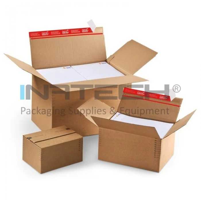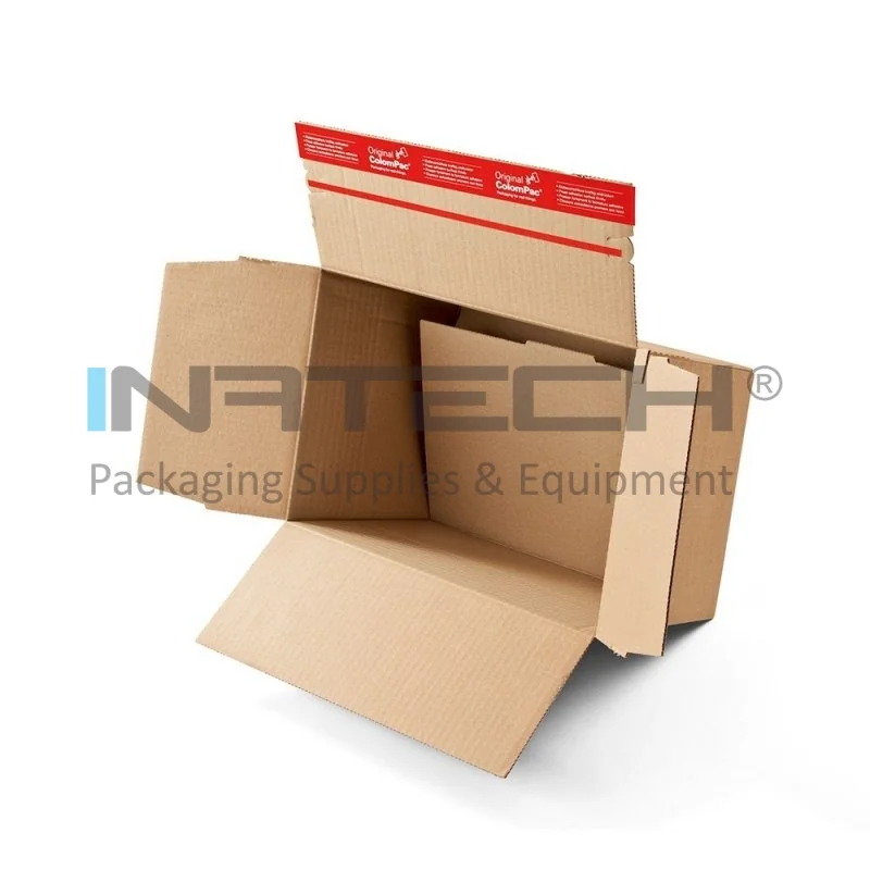 Cutia cu autoformare are o baza suprapusa pentru rezistenta suplimentara. Autosigilarea fiabila ColomPac economiseste timp si materiale de ambalare, fara sa mai fie necesara utilizarea benzii adezive.