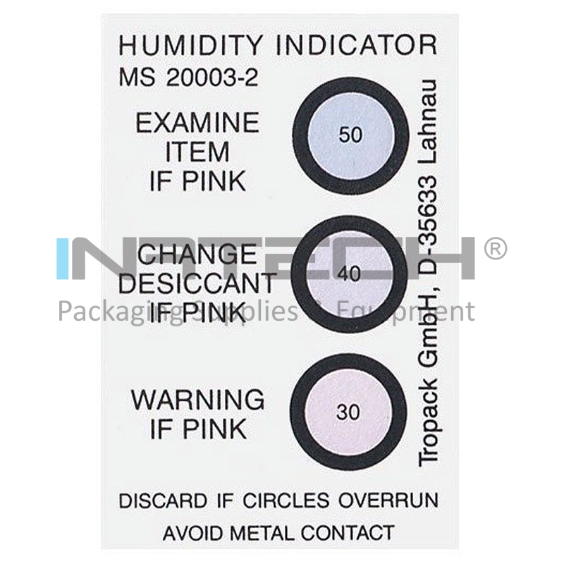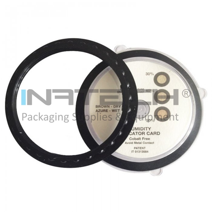 Indicatorul de umiditate este plasat in interiorul unei ferestre de plastic. Acesta poate fi fixat pe ambalaj cu scopul de a permite observarea valorii umiditatii relative din interiorul ambalajului, fara a deschide ambalajul.