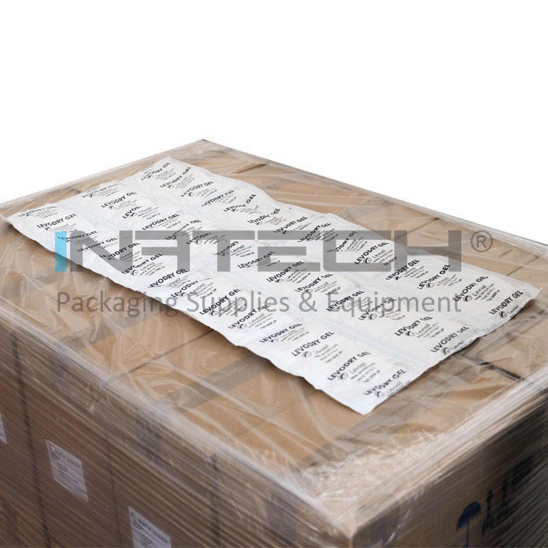 Patura desicanta este formata din 12 saculeti desicanti pentru protejarea impotriva umiditatii pe timpul transportarii marfurilor in containere. Partea superioara a paturii este realizata din material netesut permeabil vaporilor de apa, iar partea inferioara este realizata din film de polietilena. Datorita sistemului dublu adeziv, aceasta poate fi lipita pe orice suprafata.