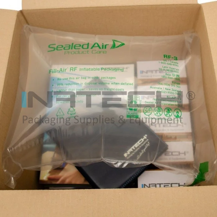 Sacii gonflabili Fill-Air RF sunt disponibili in 7 modele diferite, in diverse dimensiuni pentru aplicatii de umplere, fixare a produselor in interiorul cutiilor de transport. Sacii sunt prietenosi cu mediul si pot fi reutilizati. Comparativ cu materialele de umplere conventionale, volumul sacilor poate fi redus cu pana la 90%.