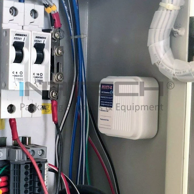 Substantele active VCI se evapora din materialul purtator (hartie, folie LDPE, folie stretch, folie cu bule de aer) in spatiul incapsulat al ambalajului;