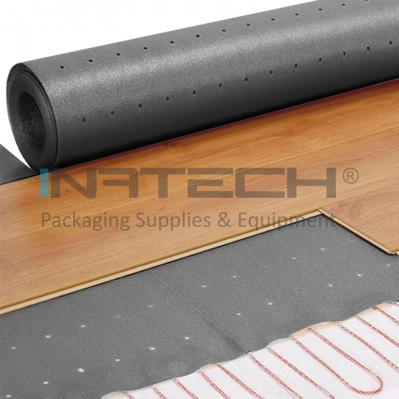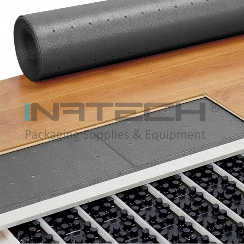 Folie Polietilena Expandata Macroperforata (folie polietilena expandata cu grosimea de 3mm si densitatea de 20-22kg/mc, macroperforata D=4mm) folosita pentru izolarea termica si fonica a spatiului unde este montat parchetul laminat / nelaminat, precum si la eliminarea micilor denivelari ale sapei.