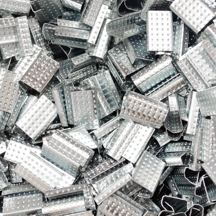 Capsele Metalice Pentru Banda PP sunt realizate din tabla zincata (asigura protectia la coroziune) si sunt folosite pentru legarea benzii paletizare PP prin sertizare. Suprafata capselor metalice este embosata pentru a realiza o strangere puternica.