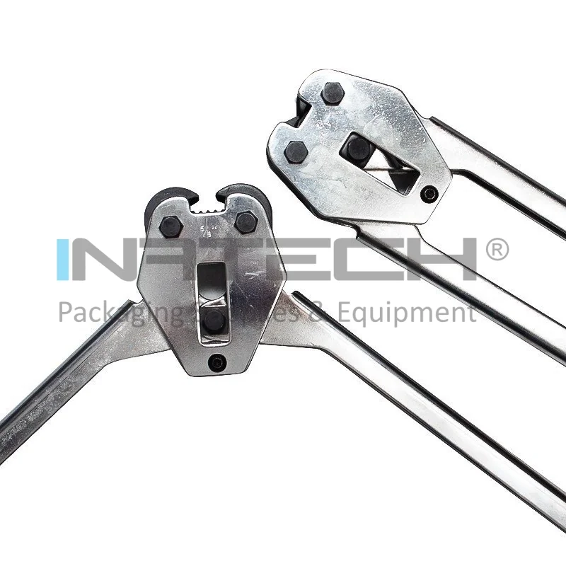 Dispozitivul pentru legat banda PP se utilizeaza impreuna cu setul de capse metalice de 12/16 mm.