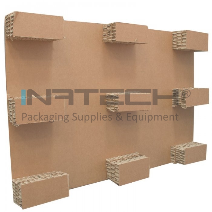 Paletul din carton tip euro suporta aceeasi greutate ca si paletul din lemn, este mult mai ieftin, usor de manipulat, ocupa un volum de depozitare si transport redus.