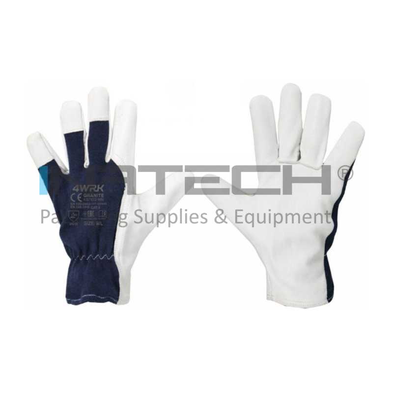 Manusi de lucru GRANITE Marime 10/XL, Композиции piele alba-tesatura bleumarin, Greutate 29GR/Manusa gr, Цвят piele alba-tesatura bleumarin