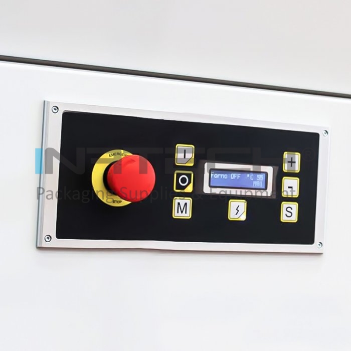Tunelul de ambalat in folie retractabila S 55 are o sectiune de alimentare modulara, separata de panoul de control si echipata cu invertoare si contactoare. Acest sistem permite un control simplu si precis al tuturor operatiunilor in desfasurare, cum ar fi viteza curelei, temperatura de contractare etc.