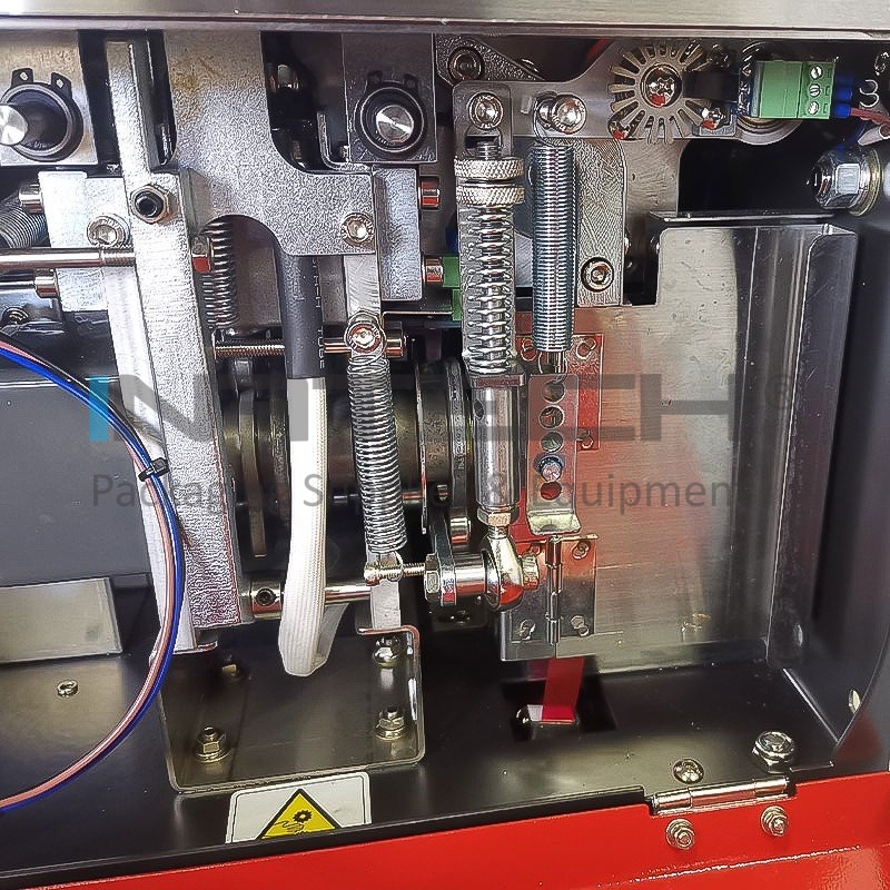 Aparat De Legat Cu Banda ce asigura o viteza de ambalare de 25 de cicluri/min si utilizeaza benzi cu latimea de 12 mm. Masina de legat cu banda poate functiona manual sau automat cu senzor, iar parametrii sai sunt gestionati de un panou color cu ecran tactil amplasat in partea frontala a masinii.
