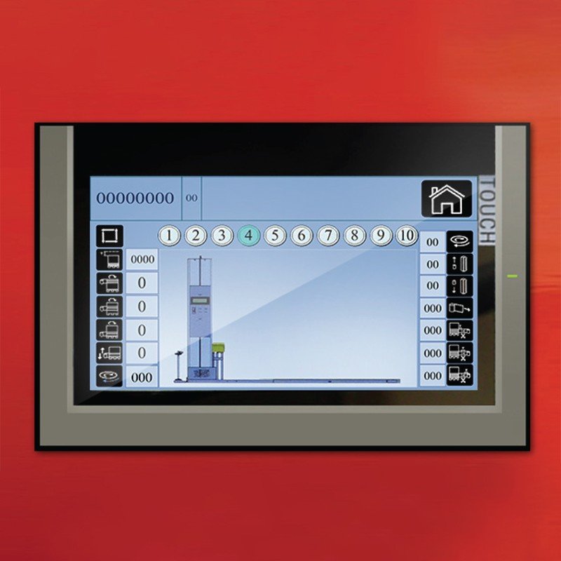Pe langa aceste caracteristici, paletizorul este echipat cu un PLC si un ecran tactil color de 7,2", care permit reglarea altor parametri precum: viteza de urcare si coborare a caruciorului, intarzierea citirii fotocelulei, contorul de cicluri etc.