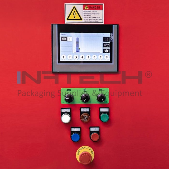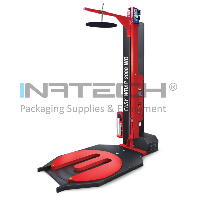 Masina de infoliat are un platan standard si poate suporta o greutate maxima de 1200 kg. Easy Wrap 2000 AWC vine cu un ecran tactil color, prin intermediul caruia se pot regla pana la 10 programe diferite de ambalare a paletului, precum si setarea unor parametri: viteza de urcare si coborare, contor de cicluri etc.
