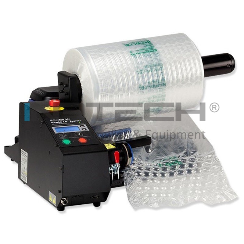 Masina care produce folie cu bule New Air Express este un mod convenabil și eficient pentru a crea perne de aer folosite la umplerea golului din cutie si la fixarea produselor asigurand astfel o protectie superioara pe perioada transportului si depozitarii. Acest sistem de ambalare ofera portabilitate, durabilitate și functionalitate.