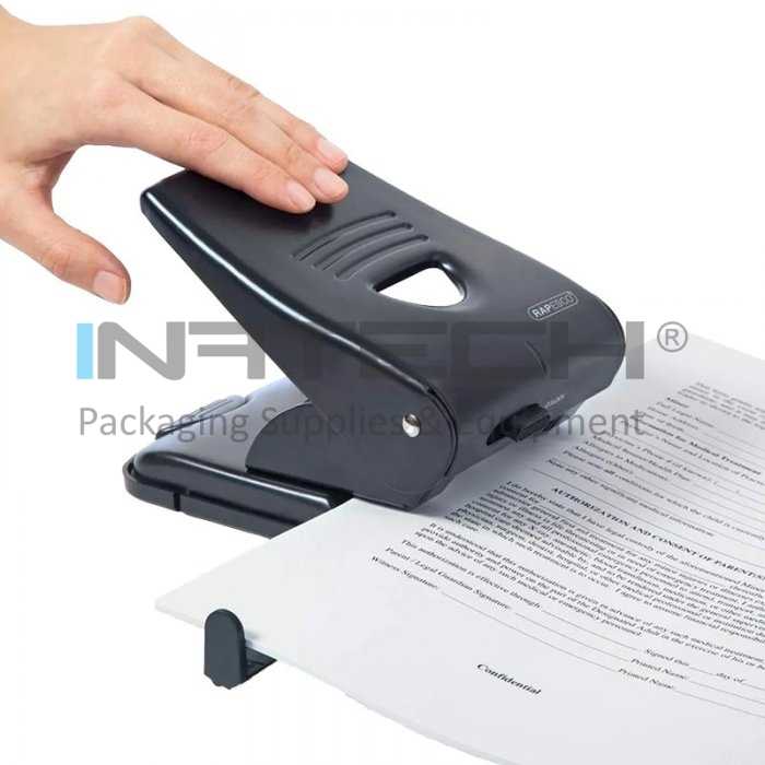 Echipat cu o rigla de ghidaj ajustabila, perforatorul permite o perforare exacta si ajustabila in functie de nevoile utilizatorului. Tavita cauciucata pentru confetti permite o curatare rapida si usoara, prevenind dezordinea la birou. Sistemul de blocare al clapei faciliteaza depozitarea, economisind spatiu pe birou.