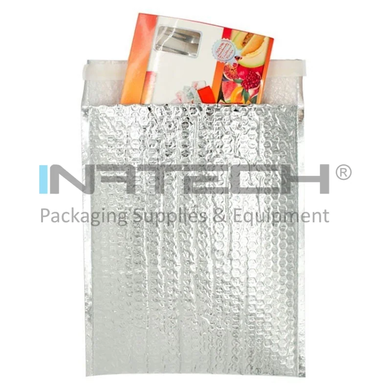 Plicul cu bule cu clapeta adeziva ofera o solutie de protectie termica pentru produse sensibile la caldura si pentru produse perisabile. Fiind alcatuite din trei straturi de material (pet metalizat, folie cu bule si polietilena expandata), plicurile protejeaza produsele impotriva factorilor externi, iar clapeta adeziva face ca utilizarea lor sa fie rapida.