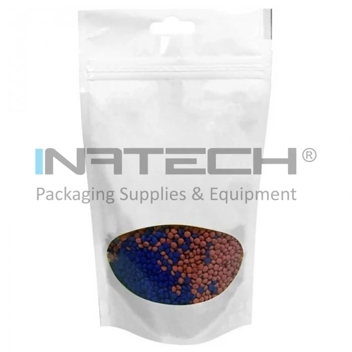 Pungi Stand Up Cu Inchidere Fermoar Tip Punga Hartie / AL / PE, Lungime 125 mm, Latime 85 mm, Clapeta Sigilare 20 mm, Burduf Inferior 2 x 25 mm, Volum 100 ml, Buc / Pachet 500