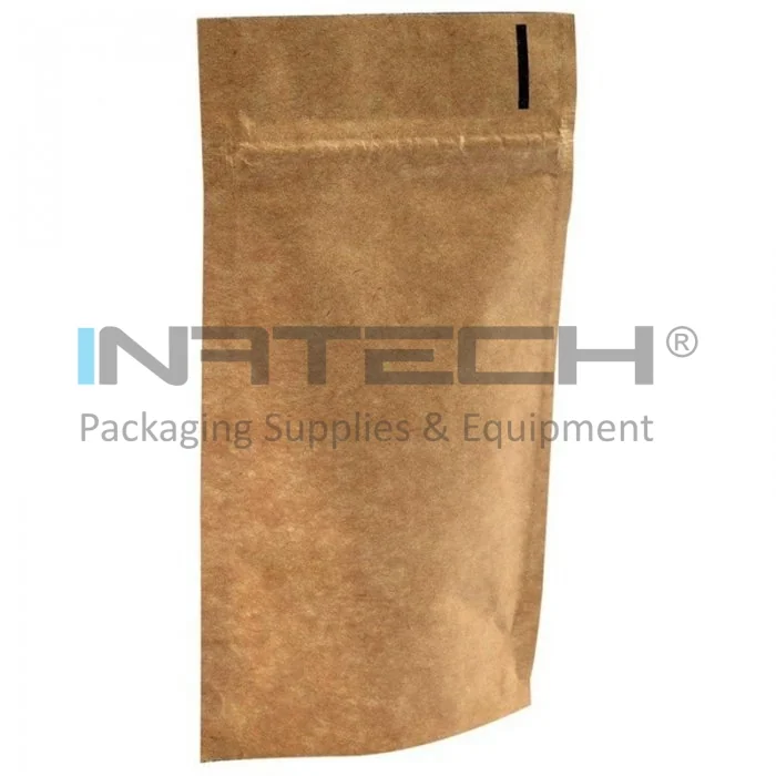 Pungi Stand Up Cu Inchidere Fermoar Tip Punga Hartie / AL / PE, Lungime 190 mm, Latime 130 mm, Clapeta Sigilare 35 mm, Burduf Inferior 2 x 35 mm, Volum 500 ml, Buc / Pachet 500
