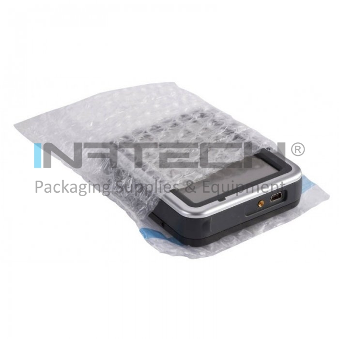 Pungi Folie Cu Bule In Doua Straturi pentru protectia produselor fragile. Folia cu bule de aer este un material de ambalare usor si flexibil, produs din folie de polietilena de joasa densitate, ideala pentru protejarea produselor fragile si cu forme neregulate. Acest tip de ambalaje protejeaza foarte bine suprafata produsului si ofera o protectie antisoc si antivibratii.
