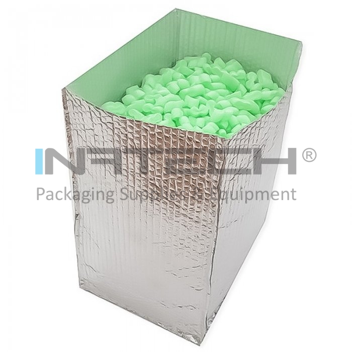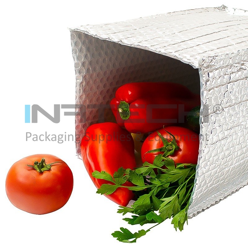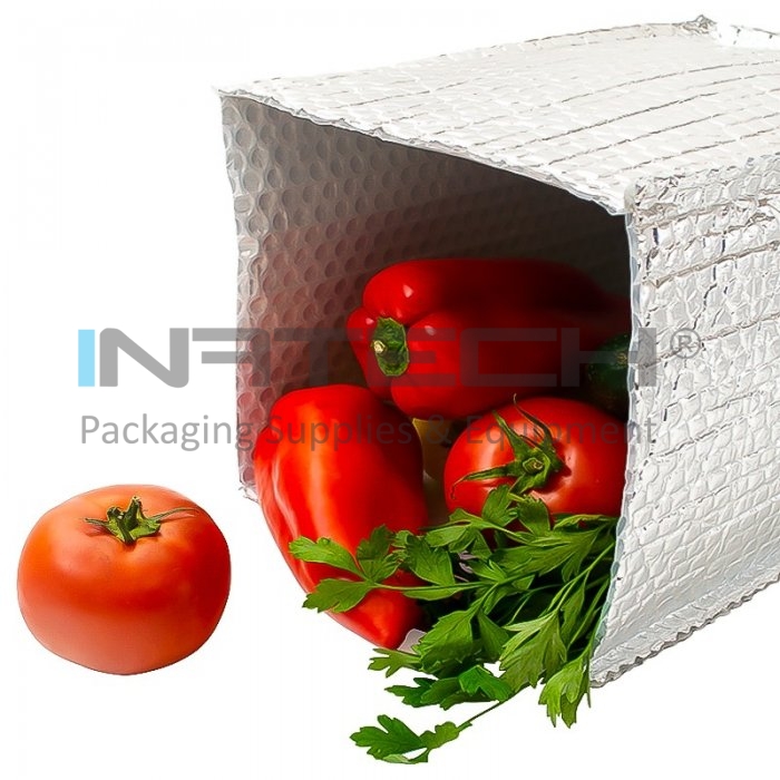 Ambalajul termoizolant pentru cutii, este destinat capitonarii termice a cutiilor din carton. Husa termoizolanta este produsa din folie cu bule de aer laminata cu aluminium pur pe partea exterioara. Pe langa protectia termica acest ambalaj ofera si protectie pentru produsele ambalate, fiind produs din folie cu bule de aer. La cerere se pot produce si alte dimensiuni.