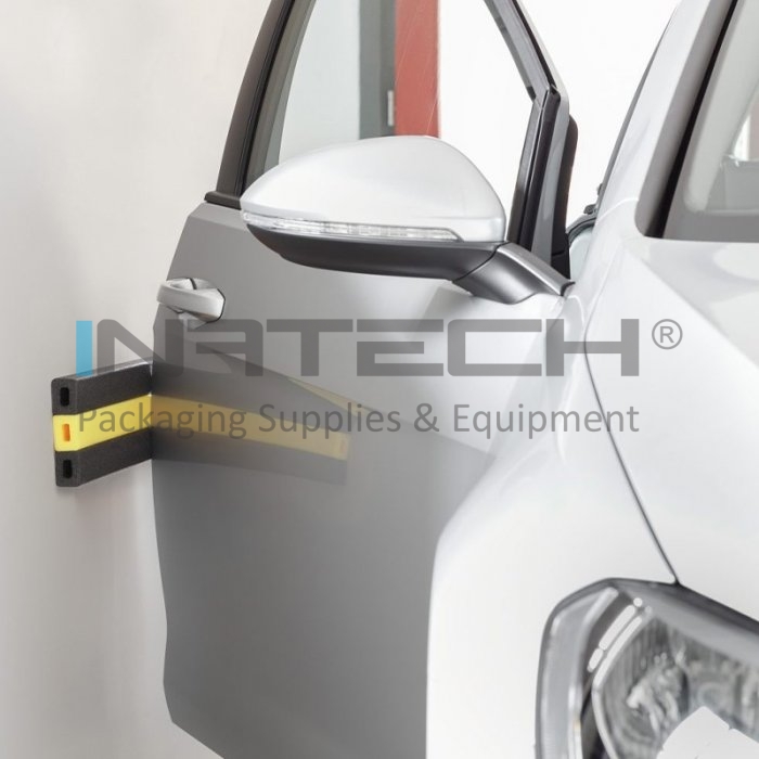 Datorita benzii adezive atasate, placa din spuma este usor de plasat pe peretele garajului, protejand in acest fel usile masinii de zgarieturi si urme de lovituri.